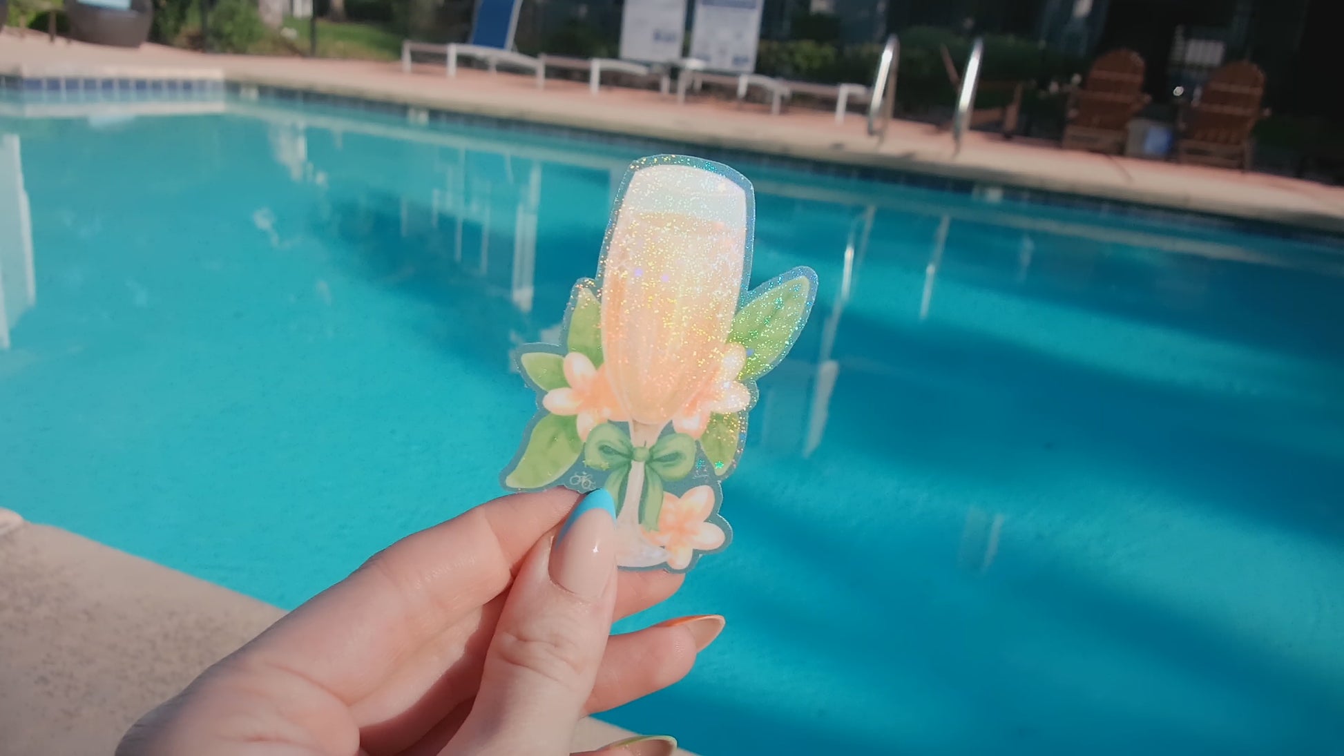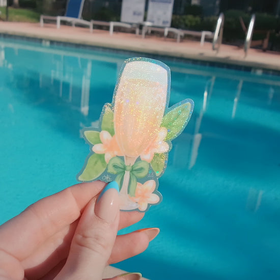 Bubbly, boujee, and always in season 🥂🌼🍾 This holographic champagne sticker is your golden hour accessory.