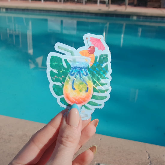 One sip away from a daydream, this holographic island dream cutie is a tropical vacation in a sticker 🌴🍹🏖️