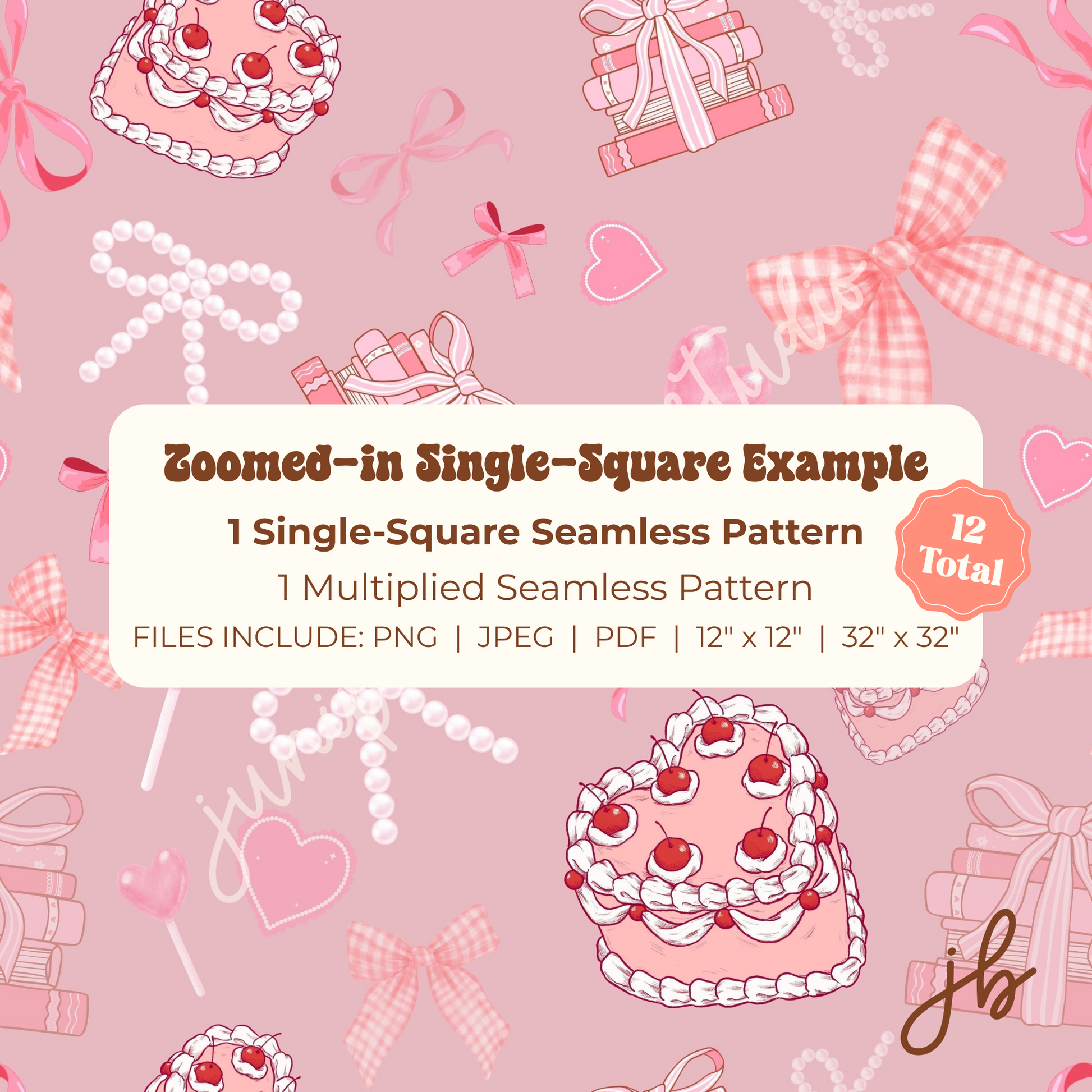 Digital files of a seamless repeating pattern in Coquette style. 🎀 Comes in PDF, JPEG, & PNG in both 12in x 12in & 32in x 32in. Can be used as digital pattern as well as on physical products.