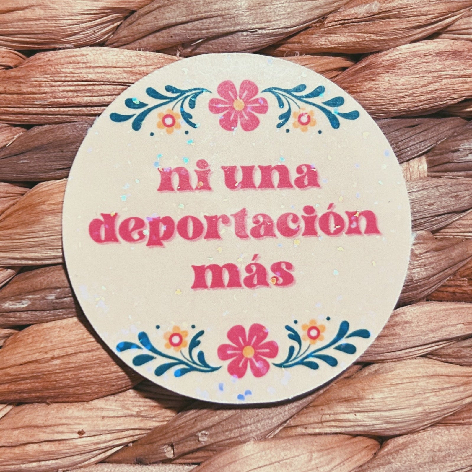 floral "ni una deportacion mas" sticker | soft and pretty holographic sticker (CHIRLA collection)