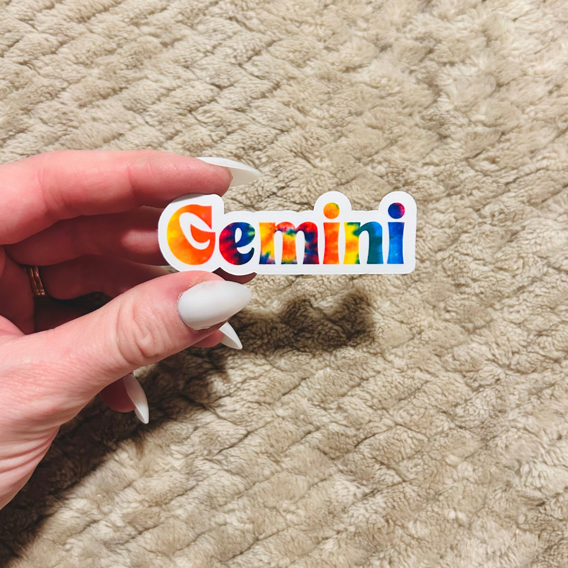 groovy tie-dye gemini zodiac sticker | clear border rainbow astrological sign sticker