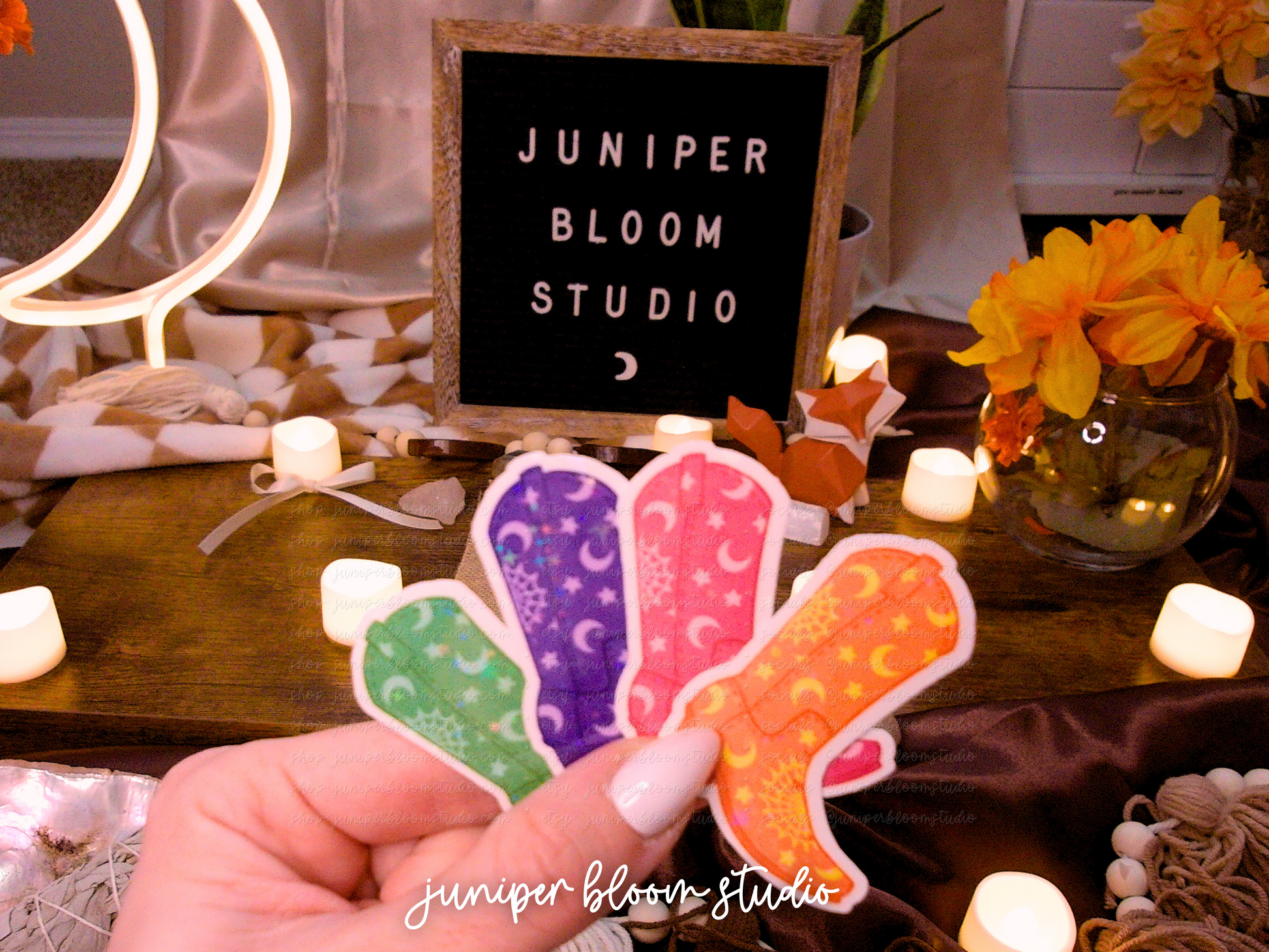 get the full holographic collection from the august summerween drop! all the ghosts, boots, dessert, & cosmic cat lady vibes a spooky would love, in one sparkly set. ✨🎃✨