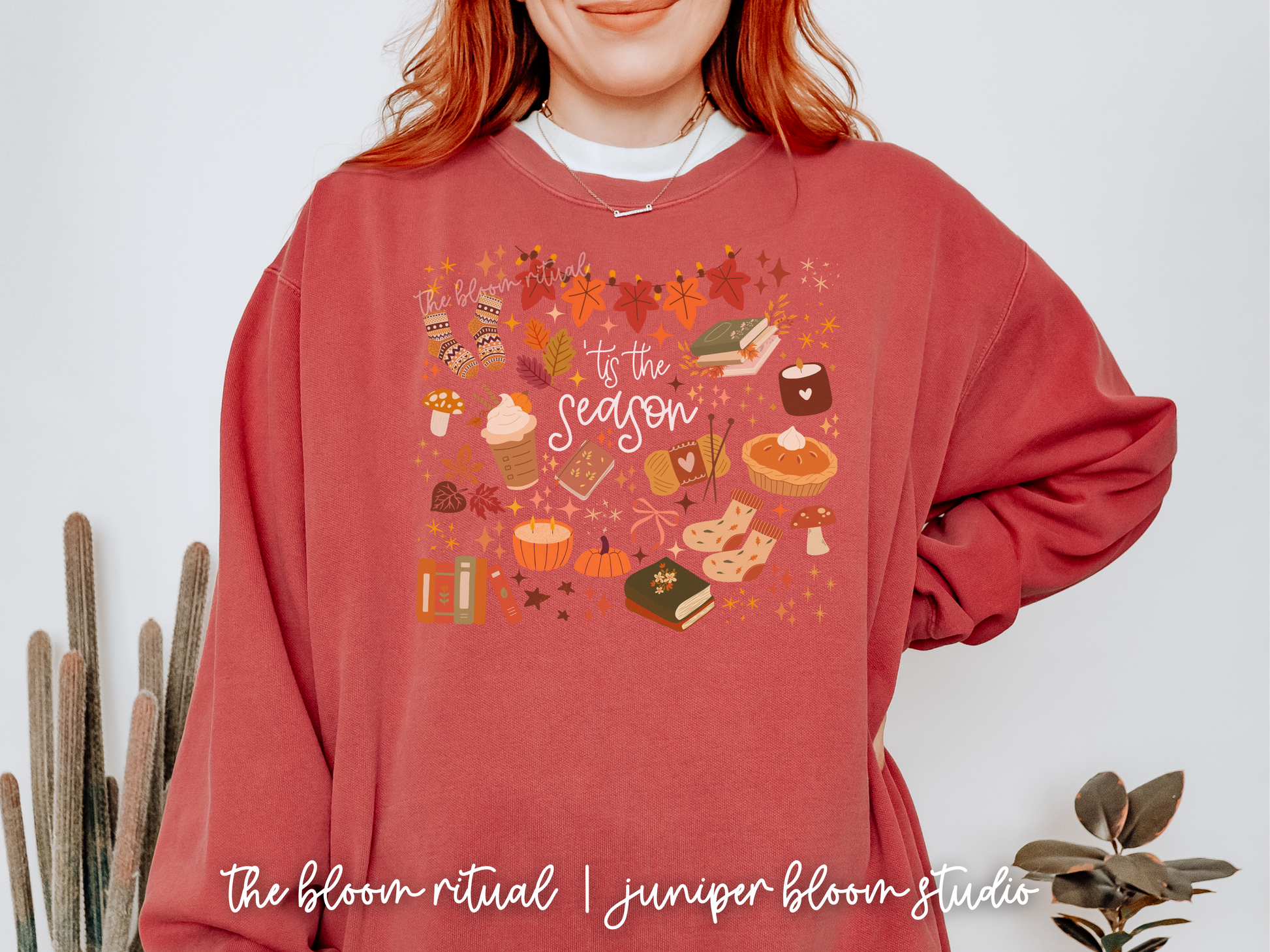 cozy crewneck for autumn - coquette bookish fall x crimson